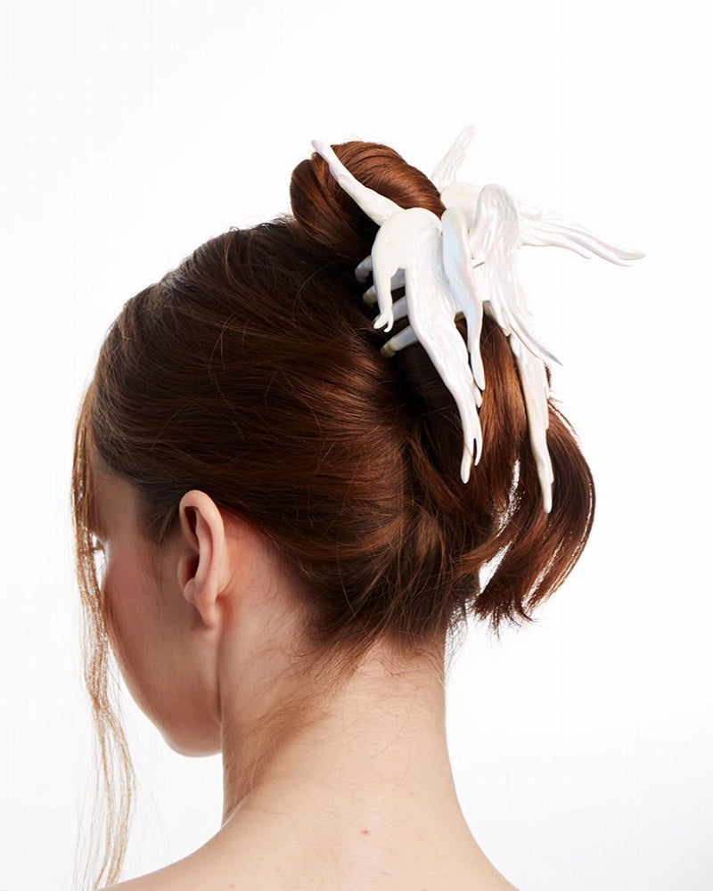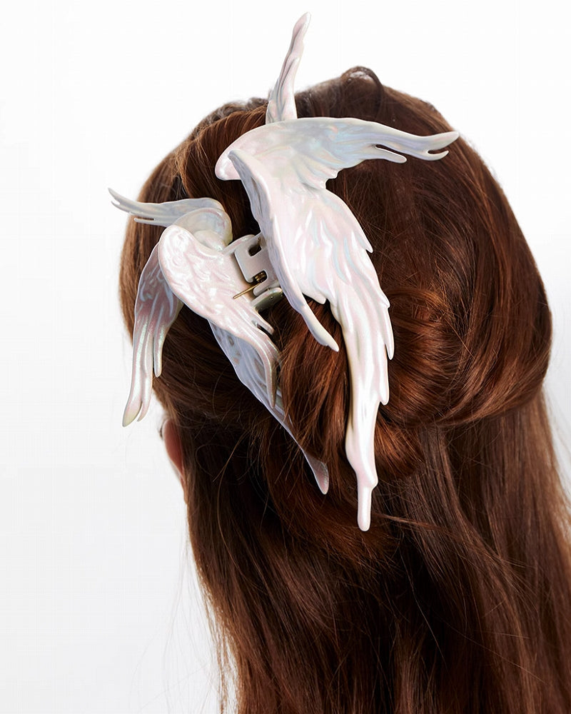 Crow Angel Wing White Hair Clip