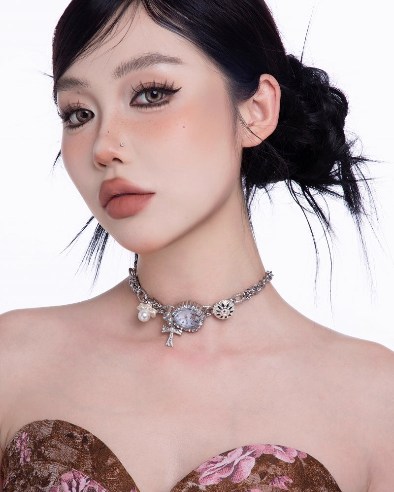 Flower Cluster Watch Choker