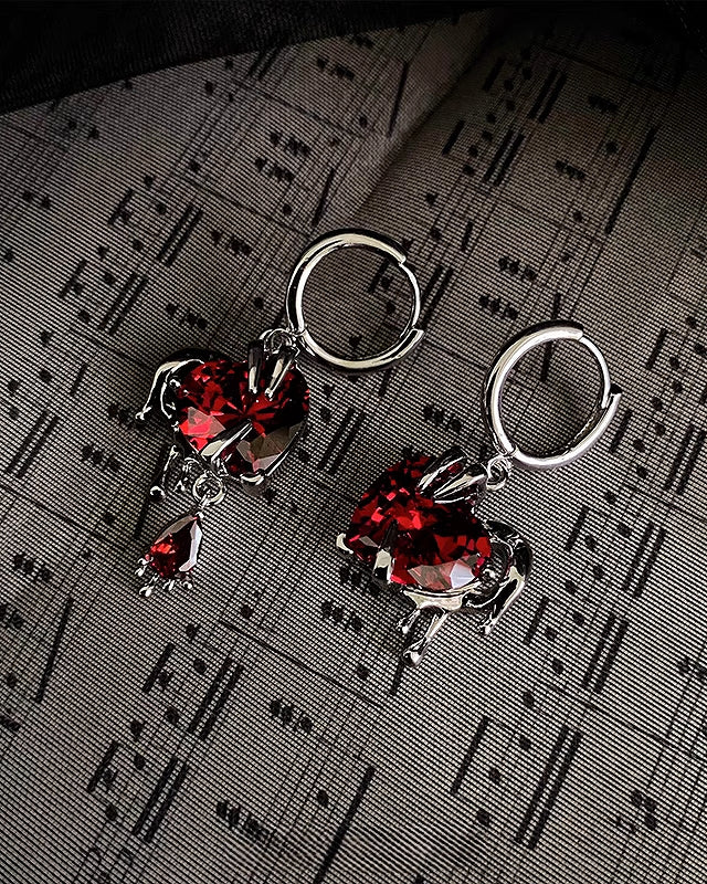 Forbidden Angel Red Love Asymmetrical Earrings