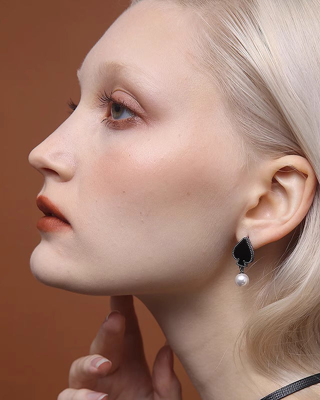 Lucky Cards Agate Pearl Earrings