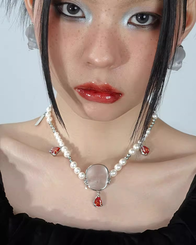 Materiale: rame e platino placcato/acrilico/zirconi/perla