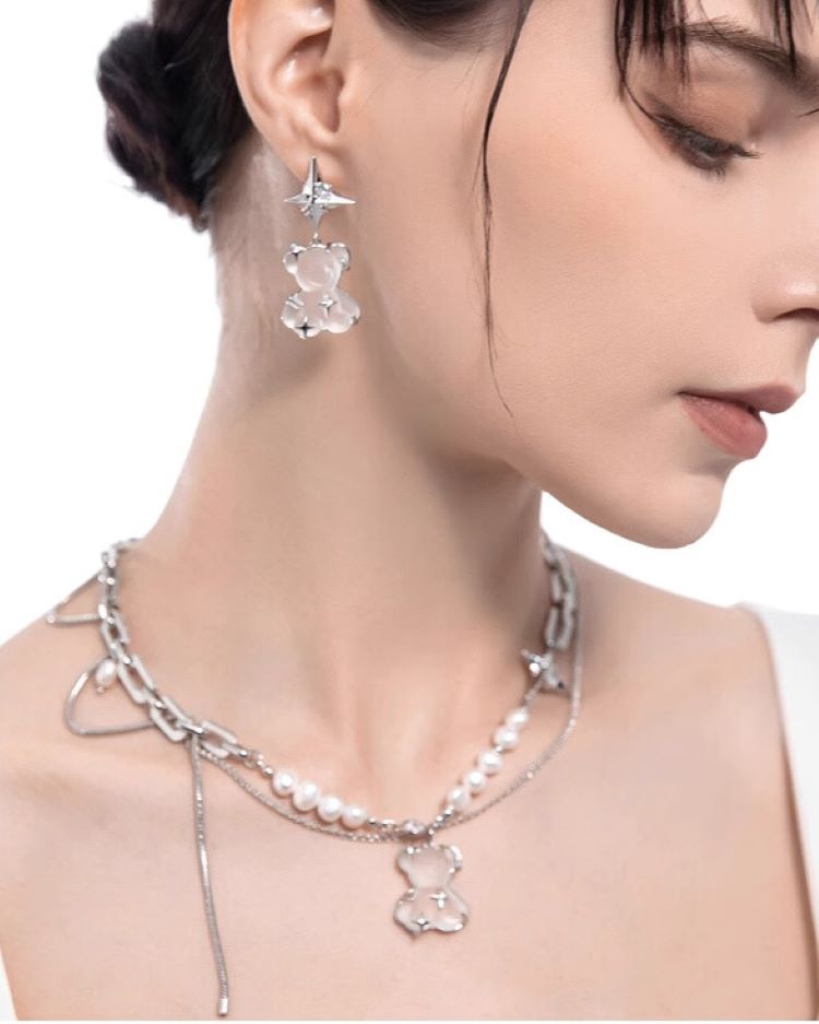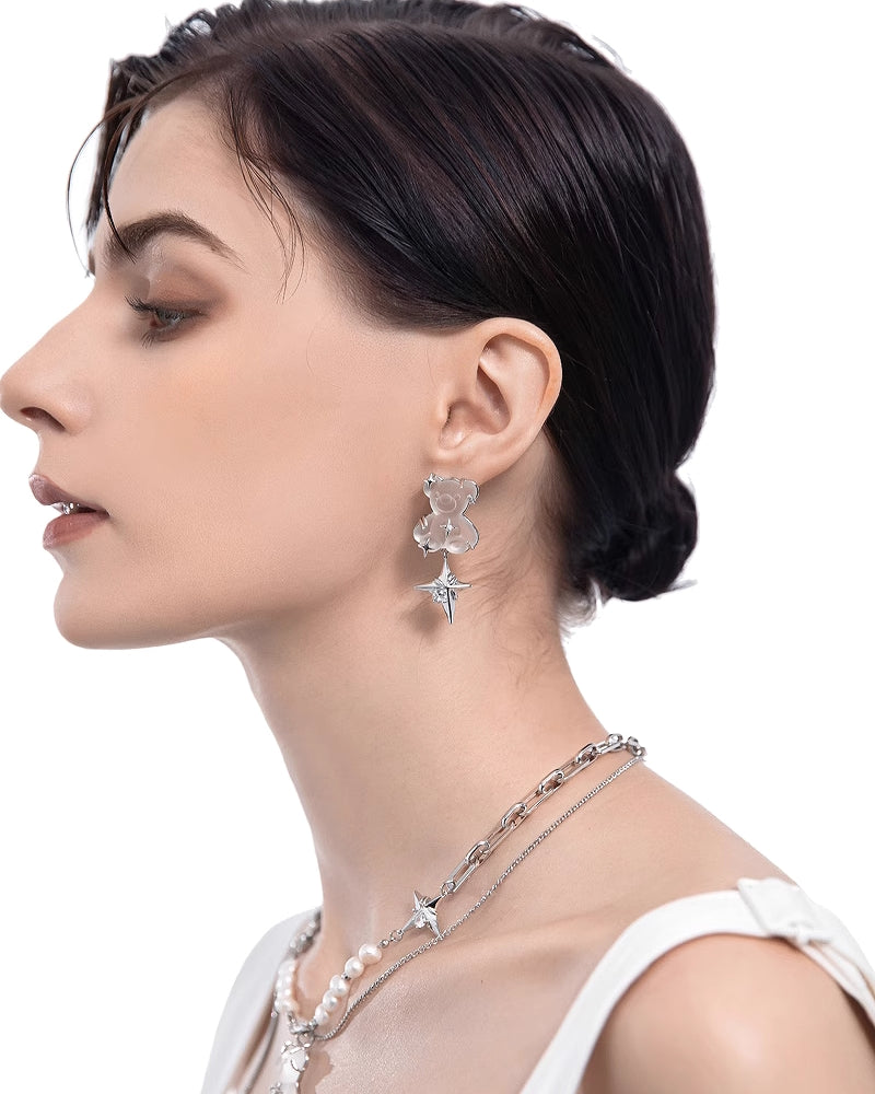 当店における"Earrings"はいわゆる耳に穴を開けて着用するタイプのもので、"Clip-on earrings"が耳に挟んで着用するタイプのものになります。