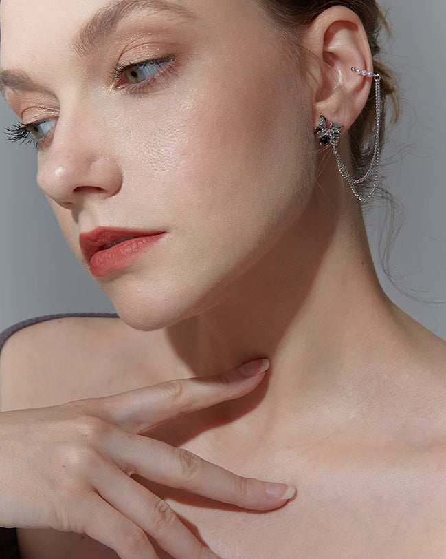 当店における"Earrings"はいわゆる耳に穴を開けて着用するタイプのもので、"Clip-on earrings"が耳に挟んで着用するタイプのものになります。
