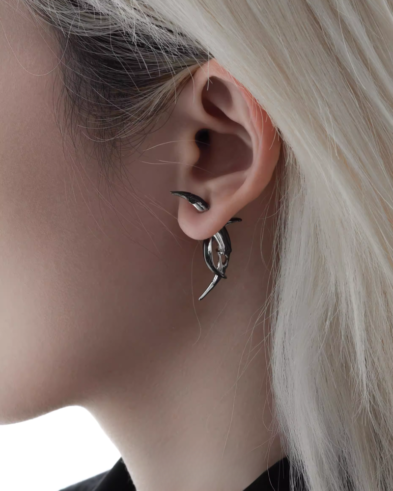 当店における"Earrings"はいわゆる耳に穴を開けて着用するタイプのもので、"Clip-on earrings"が耳に挟んで着用するタイプのものになります。