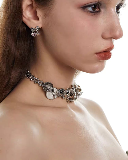 Leather Rose Metal Button Choker