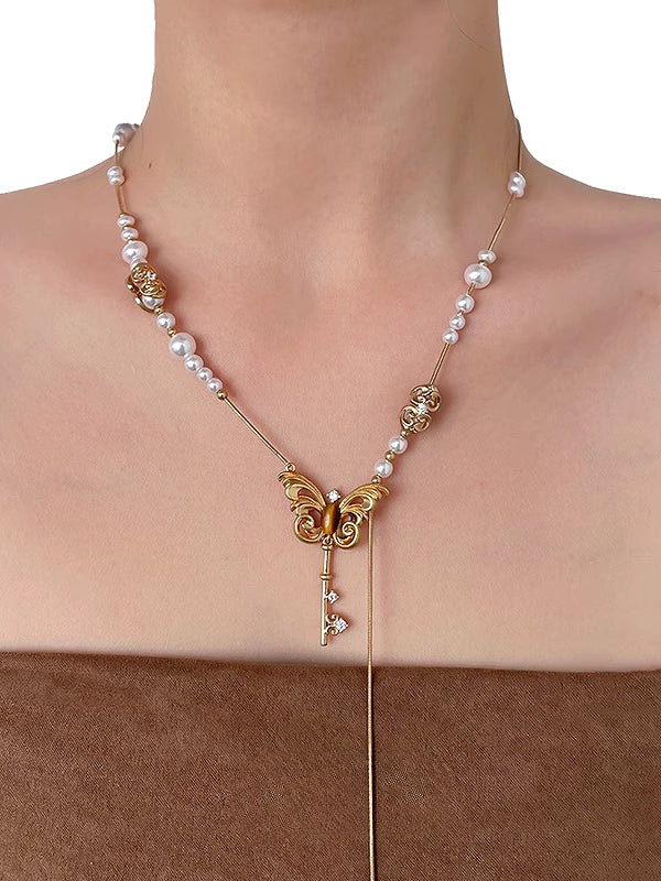 Nostalgia Butterfly Pearl Tassel Necklace