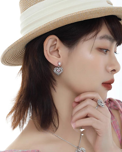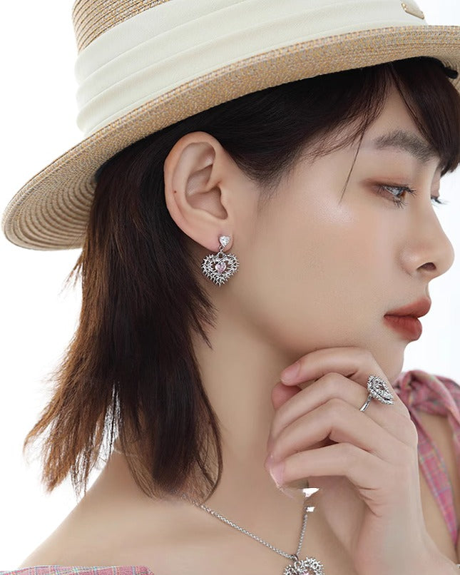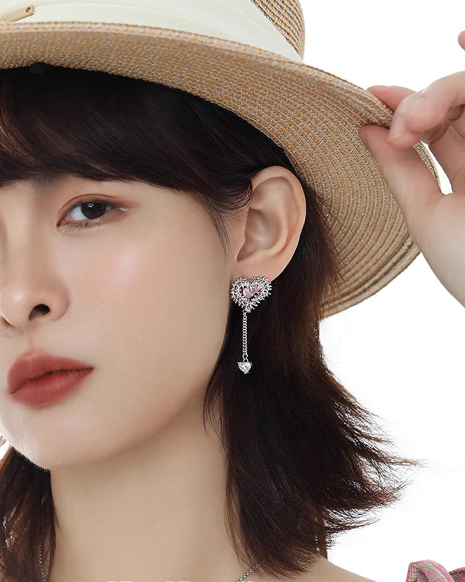 Pink Heart Spiked Thorn Asymmetrical Earrings