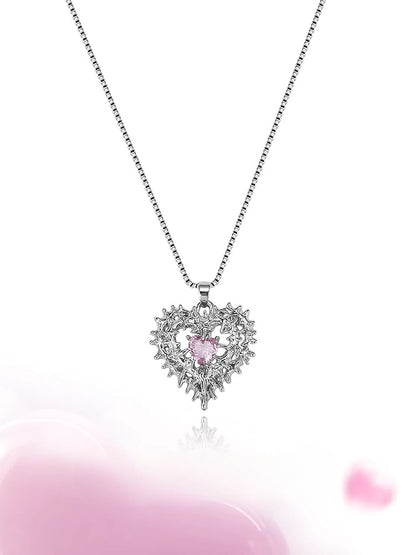 Pink Heart Spiked Thorn Necklace