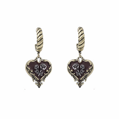 Retro Heart Rose Earrings