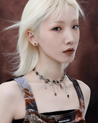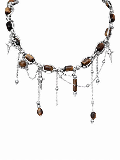 Sunset Dunes Tiger Eye Stone Tassel Necklace