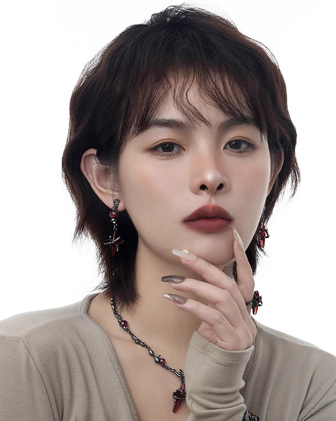 当店における"Earrings"はいわゆる耳に穴を開けて着用するタイプのもので、"Clip-on earrings"が耳に挟んで着用するタイプのものになります。